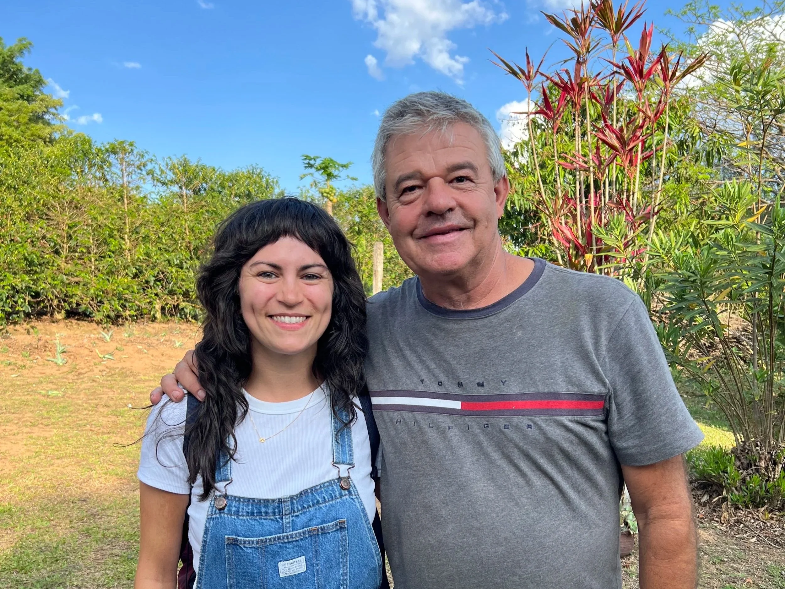 Spella’s Head Roaster, Chelsea (overalls), visiting Joào Marcos (Espresso) on a trip with Atlas Importers.